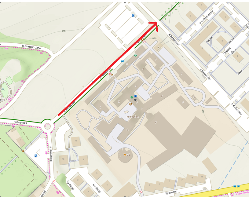 - zavedení jednosměrného provozu ve směru od kruhového objezdu z ulic Vrbnovská a K Nemocnici až ke křižovatce ulic K Nemocnici a K Bažantnici.