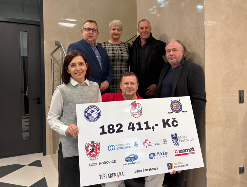 „Děkujeme hráčům obou klubů za jejich podporu i nasazení, s nimiž bojují pro naše pacienty. Velmi si vážíme všech, kteří se rozhodli podpořit hořovickou onkologii,“ říká ředitelka společnosti Multiscan Ing. Mgr. Martina Kulštejnová, která společně s primářem místní hořovické onkologie MUDr. Martinem Šmakalem šek s velkou vděčností přijala.