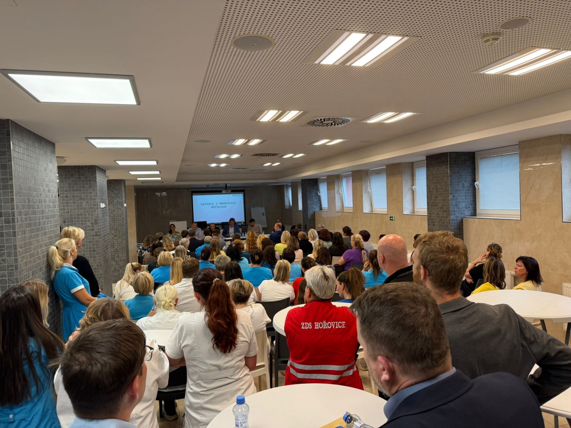 Součástí setkání byl také prostor pro otevřenou diskusi a dotazy zaměstnanců. Diskuse se nesla v duchu otevřenosti a konstruktivního dialogu. Zazněly dotazy týkající se především provozních záležitostí nemocnice. Na konci setkání probíhaly ještě hojné kuloární diskuse mezi přítomnými zaměstnanci a vedením holdingu.