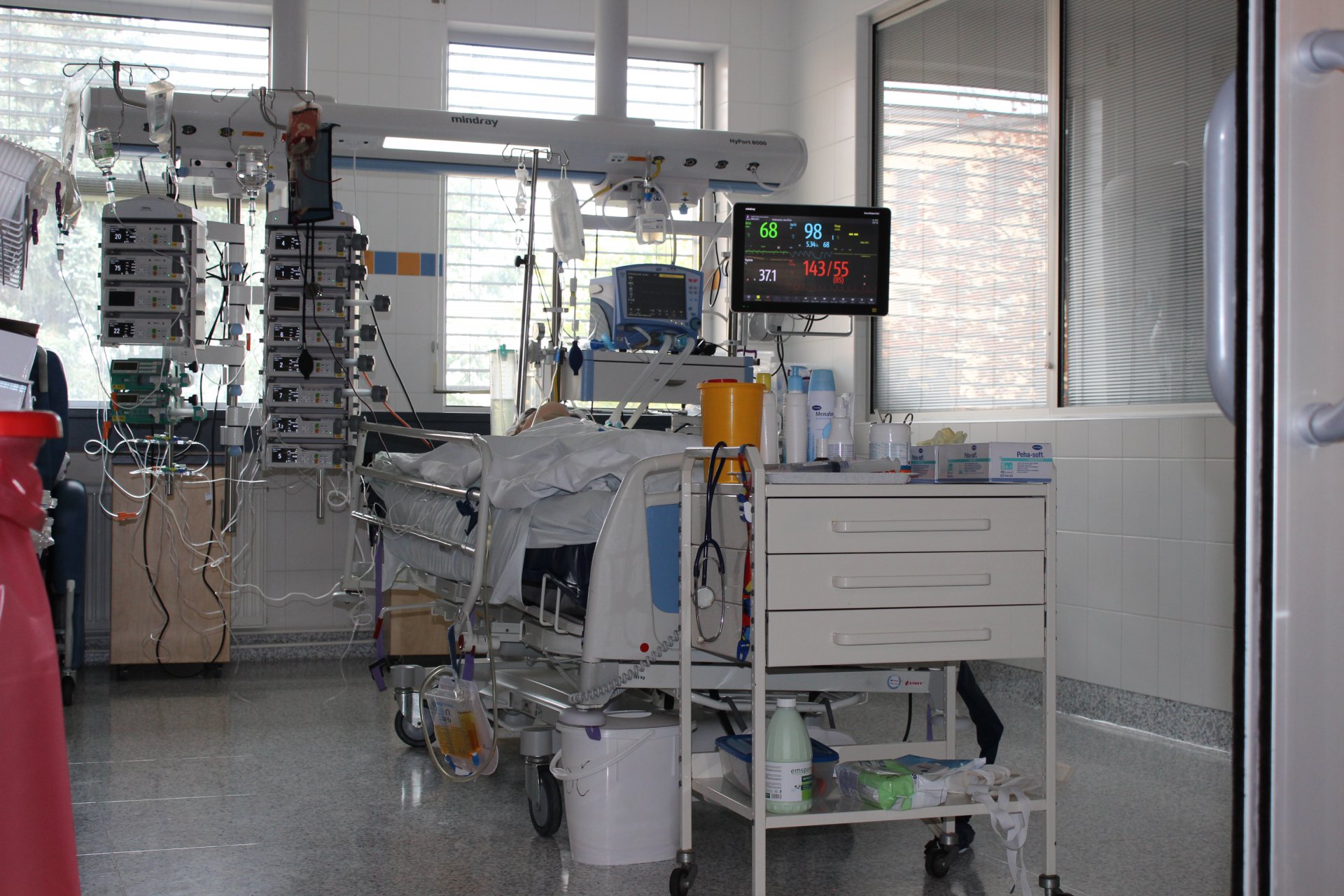 (Poznámka – v asi půlhodině, kdy Petr Kotva vyprávěl o dění na oddělení, mezitím jeho kolegové připravili jednoho ventilovaného pacienta k plánovanému převozu na operační sál, spustili jinému pacientovi dialýzu, u jiného uskutečnili příjem na oddělení a dalšímu zavedli centrální žilní katetr…a pro jeho celkově zhoršený stav ho intubovali…)